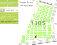 Web sitemiz yayna gemitir.Web sitemizden interaktif harita sayesinde Kenan Evren Sanayi Sitesindeki firmalara kolayca ulaabilir, istek ve ikay...